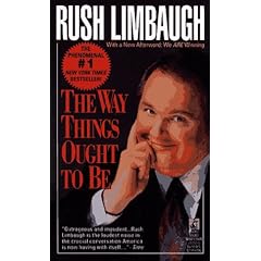 Back in 1993, I bought my grandmother--a died in the wool, if not logically grounded Republican--Rush Limbaugh's book, The Way Things Ought to Be. Grandma loved the guy. Me, I found him to be a curiosity. I often watched his television program, not as a fan, but for the sheer audacity of it. It was right up there with The Morton Downey Junior Show, or even The 700 Club for its loony, fringe theories and pronouncements.